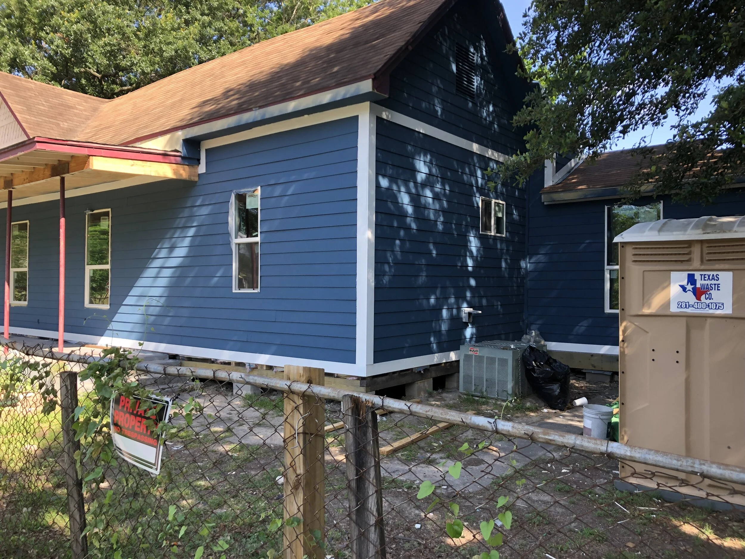 The old wood siding was in very poor shape and just was not savable so we replaced it with a cement board type of siding that is better suitable for the harsh Houston weather. Though we were able to keep the original decorative siding in the gables. We will sand and clean this up, give it a good sealing before we paint it.