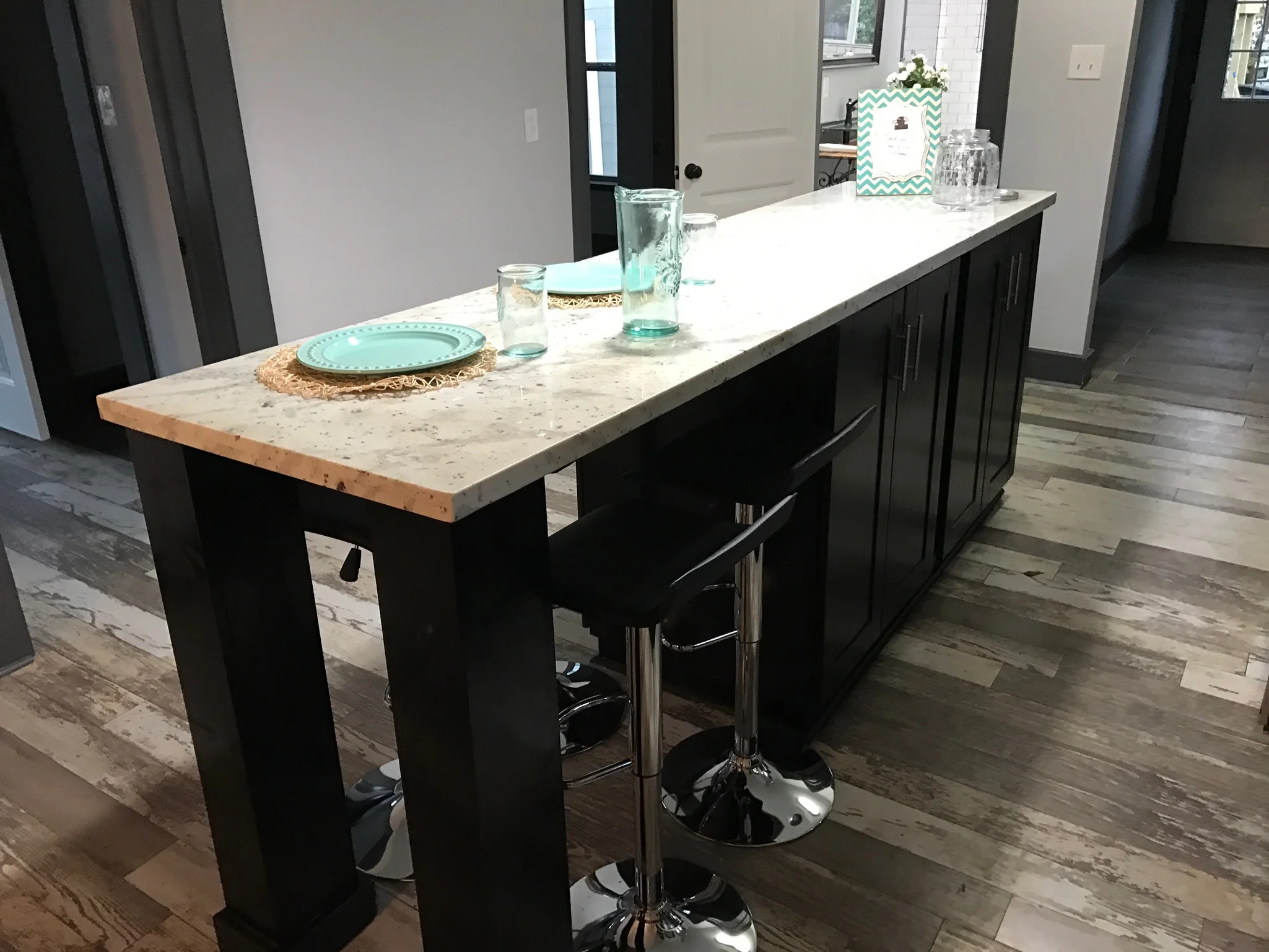 The kitchen was a narrow galley kitchen, so we were limited to a narrow island, but I knew that I wanted room for bar stools, so we left one side of the island open to put bar stools on both sides of the island.